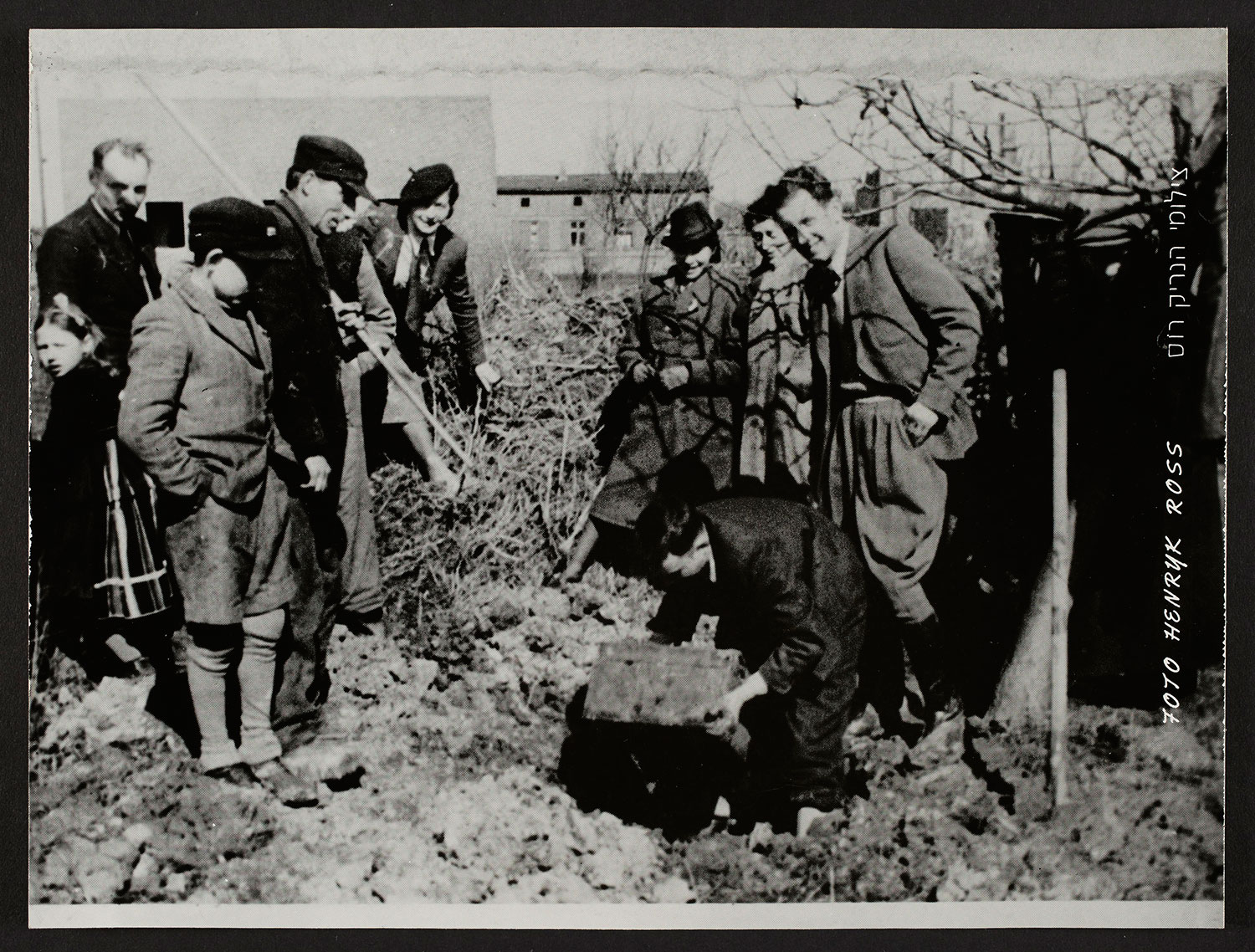 Коробку с негативами Генрика Росса извлекают из тайника, март 1945